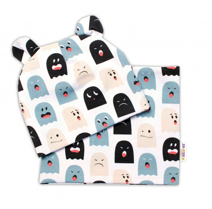 - Baby Nellys Dvouvrstvá čepice s oušky, komínek Příšerky Bílá/mátová Obvod: 38-42 cm