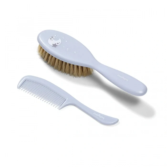 Kartáček a hřeben na vlasy. Kartáček s měkkými naturální štětinkami je určena na masírování hlavičky kojence a ošetřování jeho prvních vlásků. Obsahuje měkké zaoblené tvary, štětinky nedráždí a neelektrizují pokožku. Správné masírování hlavičky kartáčkem posiluje vlasy a urychluje jejich růst.