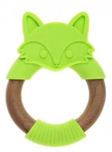 BocioLand Silikonové dřevěné kousátko Liška Zelené