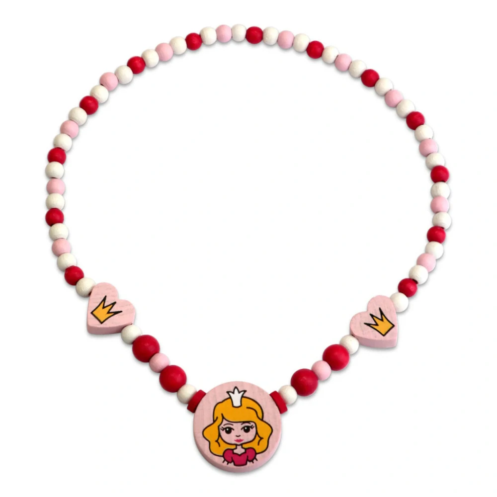Náhrdelník z dřevěných korálků s obrázkem princezny bude ozdobou každé malé slečny.