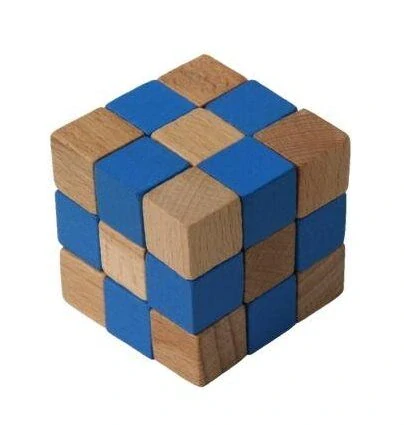 Dřevěný hlavolam kostka modrá. Skvělá hra, která pomáhá rozvíjet strategickou mysl. Ideální pro interaktivní hraní. V nabídce je 8 barevných provedení s rozdílnými obtížnostmi seřazenými od nejlehčí po nejsložitější. Čím tmavší barvu hlavolam má, tím je složitější.