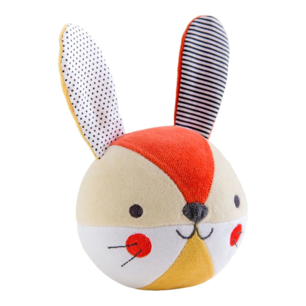 Zábava s chrastícím zajíčkem. Ručně vyrobeny, měkký chrastící zajíček je ideální pro uchopení do drobných rukou. Chrastítko je vyrobeno z organické bavlny nejvyšší kvality s certifikací GOTS. Vhodný od narození.