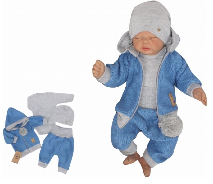 - Z&Z 4-dílná pletená soupravička Kabátek, tepláčky, čepička a body Modrá/šedá, vel.56