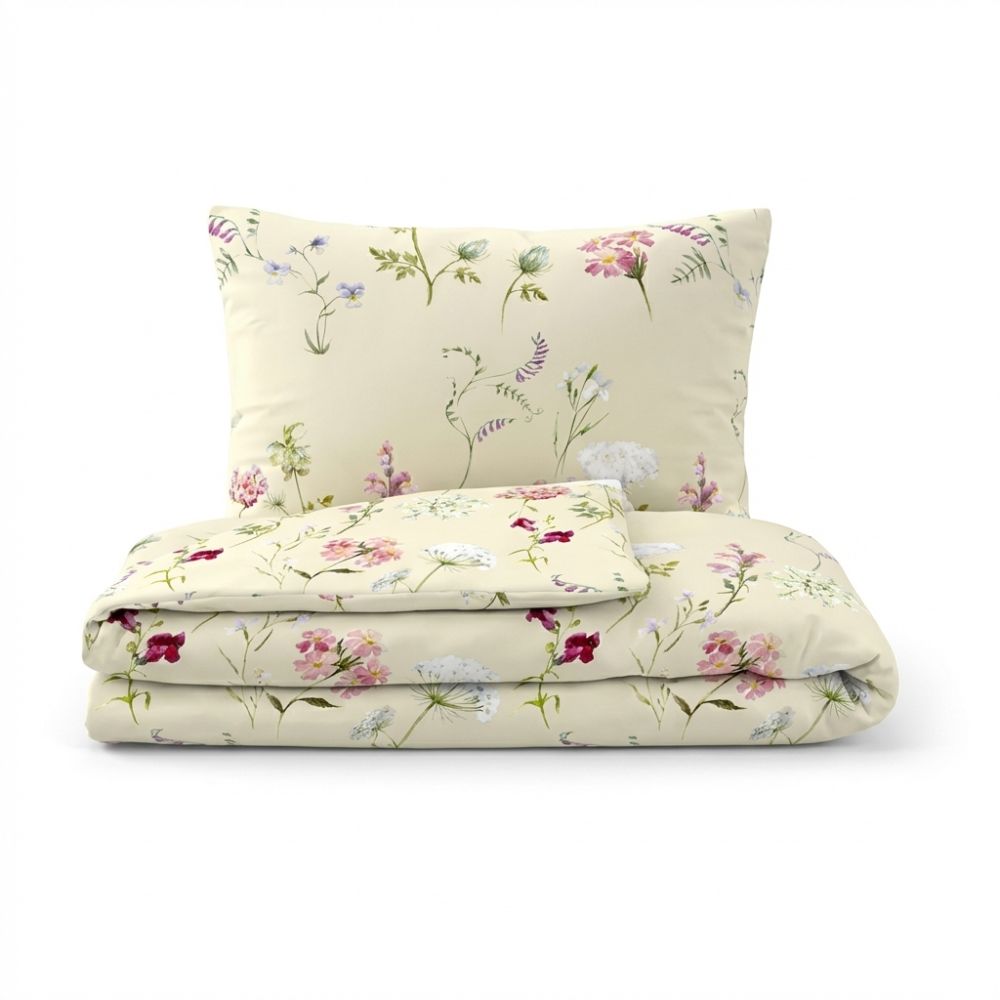 Ložní povlečení z kolekce DELUX je vyrobeno z velmi jemné tkaniny s vysokou hustotou jemných přízí. Klasické bavlněné povlečení BOTANICA smetanová zdobí motiv lučních kvítků na smetanovém podkladu.