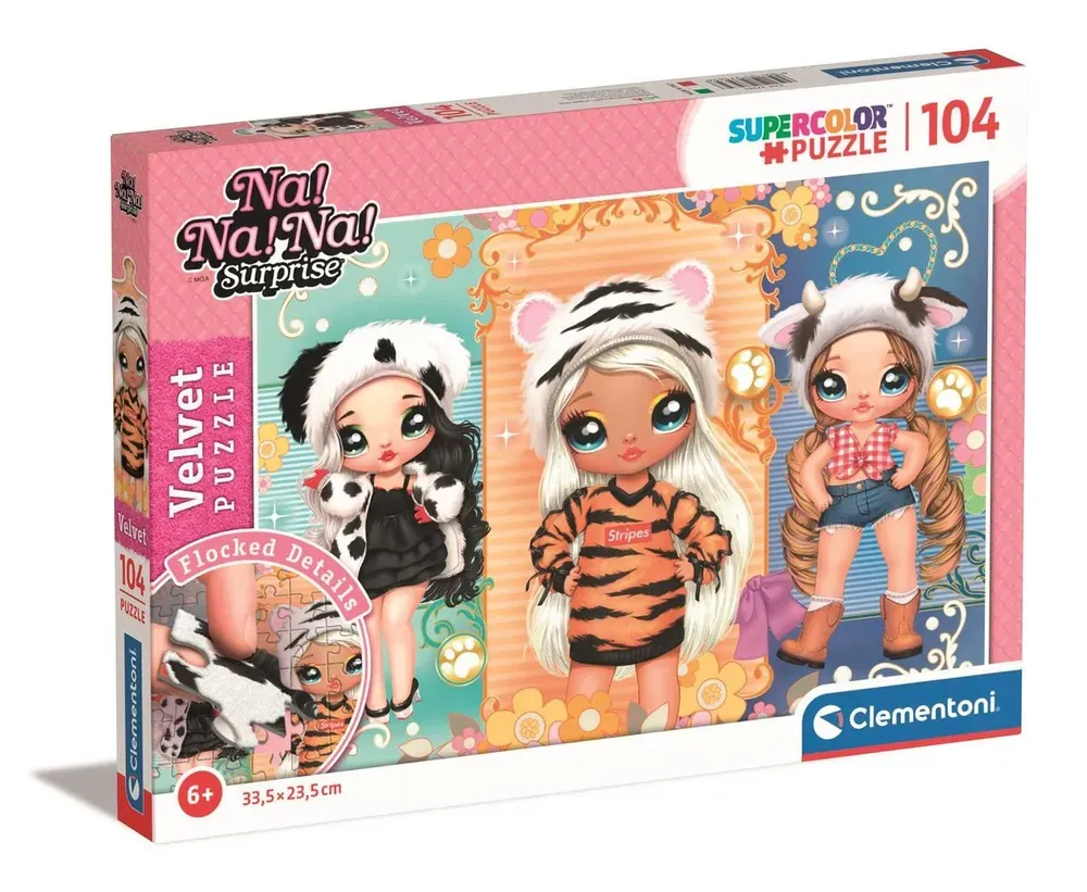 Puzzle ze série Clementoni Velvet má části obrázků pokryté jemným heboučkým sametem. Semišový povrch vytvořený technologií flock dodává obrázku stylový vzhled. Puzzle SuperColor Collection - edice navržená speciálně pro děti, pomáhá jim rozvíjet manuální zručnost a schopnost pozorování. Kvalita materiálů a exkluzivní technika tisku zaručují trvale krásné, živé a zářivé barvy.