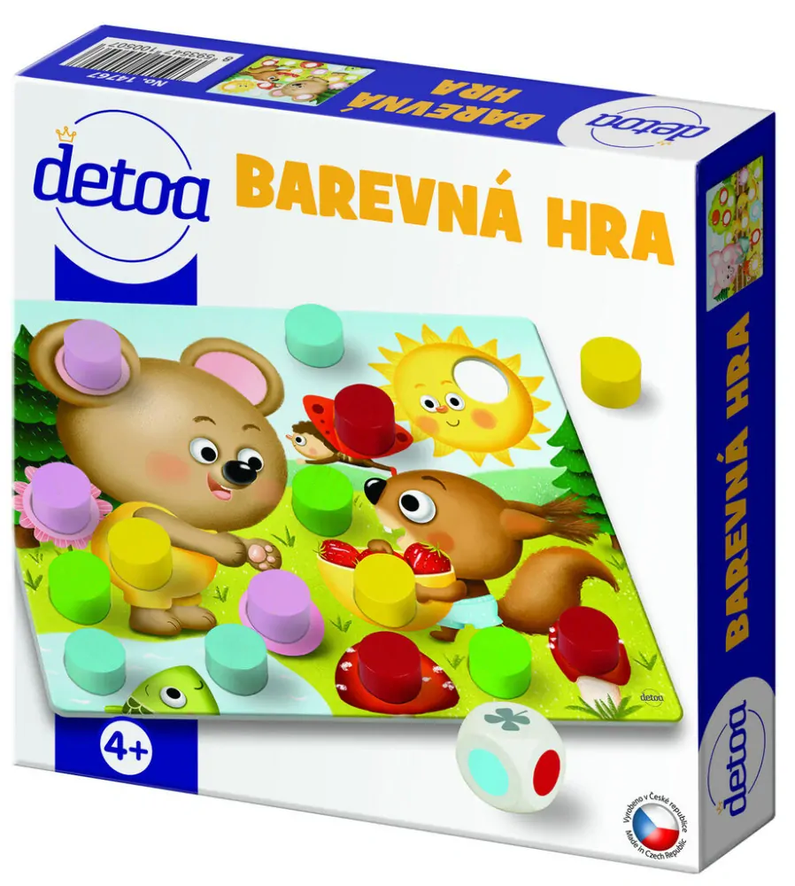 Desková hra pro nejmenší hráče od 4 let a jejich rodiče. Hra pomůže vyplnit dětem a jejich rodičům společně strávené chvíle. Rozvíjí znalost základních barev a motoriku rukou.Výrobek splňuje požadavky EU na bezpečnost hraček a je vhodný pro děti od 4 let.