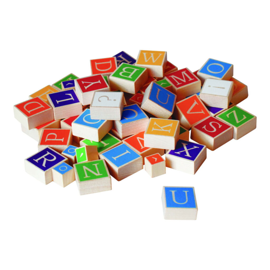 Dřevěné dílky s písmenky a diakritickými znaménky 60ks. Hra učí děti poznávat písmenka a skládat první slova a pomáhá rozvíjet motoriku rukou.